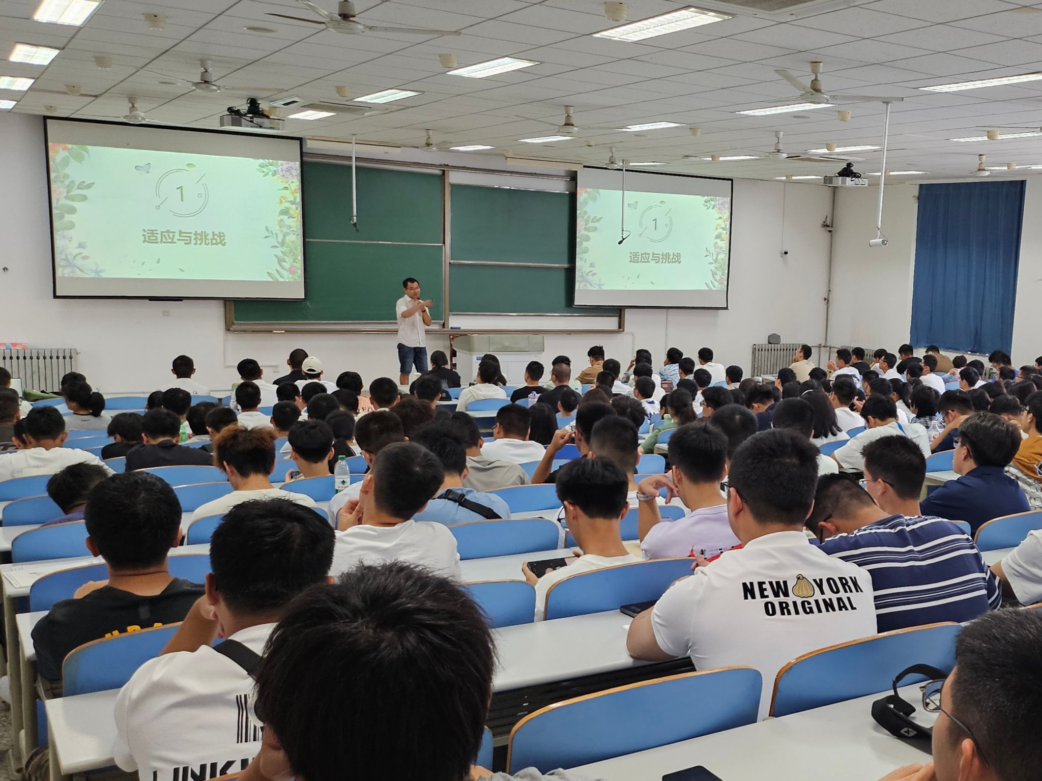 以学生成长成才的需求为根本导向,帮助新生尽快适应大学学习生活,营造良好的学风班风,学院特别邀请优秀学生代表乔亚斐和张泽域为学弟学妹展开经验分享。乔亚斐以“创新创业”为主题,分享了自己在大学期间参与创新创业项目的经历和收获。他鼓励新生们要敢于尝试新事物,勇于挑战自我,通过创新创业实践来提升自己的综合素质和创新能力。张泽域则介绍了自己的学习经验和方法,他强调学习要讲究方法和效率,合理规划时间,做到劳逸结合。两位学长的分享让新生们受益匪浅,为新生的大学生活提供了宝贵的参考。