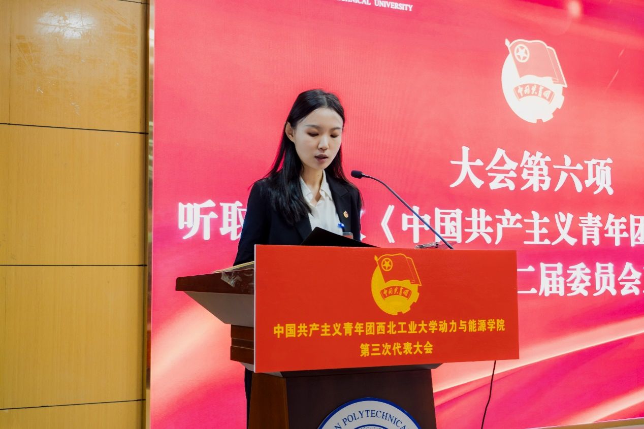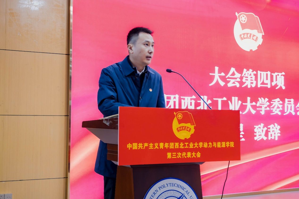 校团委副书记刘星首先代表校团委向大会召开表示祝贺,并向现场各位团员代表致以亲切的问候。他表示:新葡的京集团35222vip团委在学院党委坚强领导下,政治引领青年有高度、团结凝聚青年有温度、服务青年成长有力度,在全校共青团工作中发挥了示范引领作用。未来,希望动能团员青年以实现中华民族伟大复兴为己任,以奋发有为的精气神、挺膺担当的使命感,将“国家所需”与“动能所长”相结合,踔厉奋发、勇毅前行,用实际行动践行“请党放心,强国有我”的青春誓言。