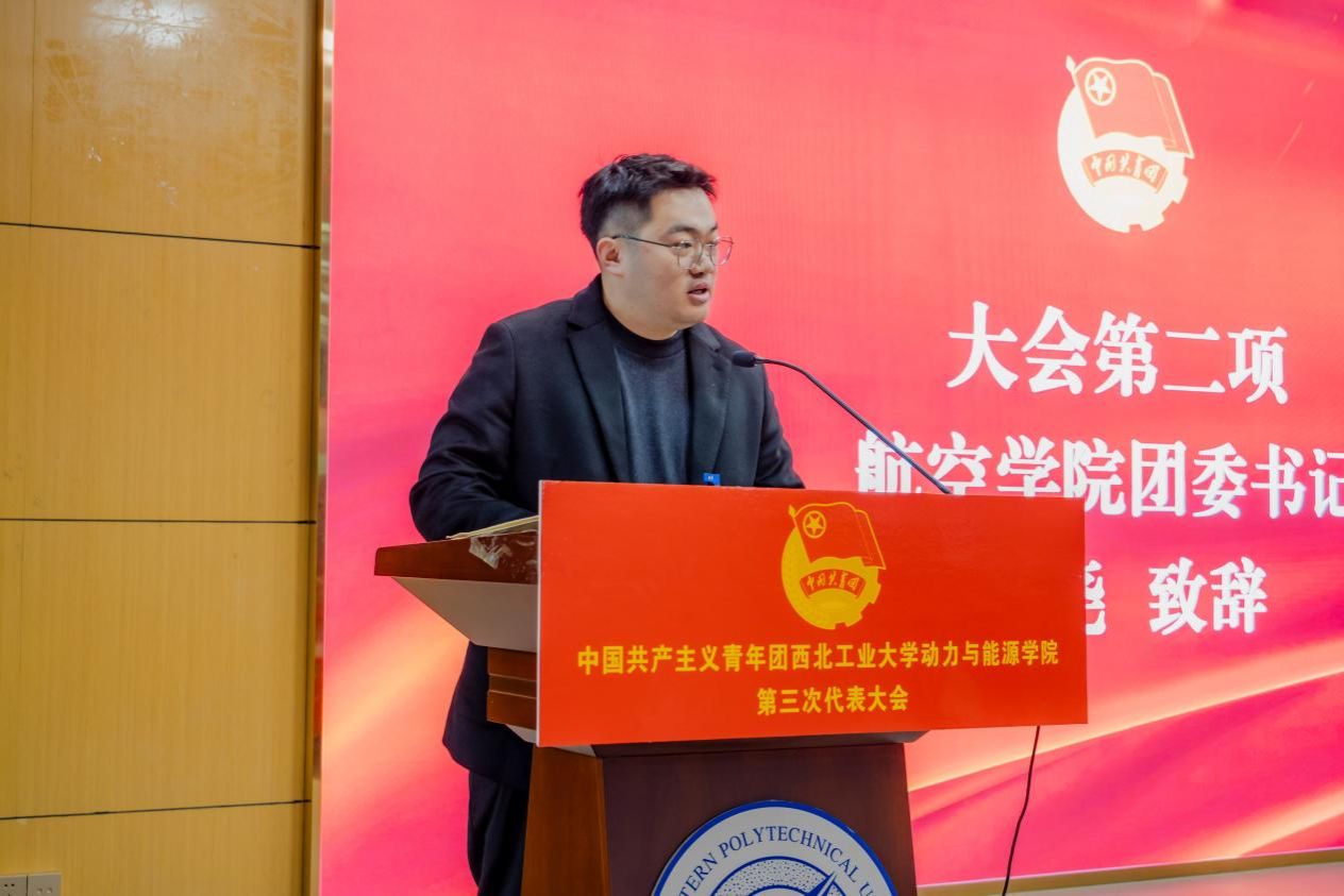 新葡的京集团35222vip党委副书记徐永超代表学院党委向到场嘉宾、团员代表表示热烈欢迎,并向大会筹备委员会的同学们致以感谢。他在致辞中首先对学校团委给予学院团学工作的大力指导和支持表示感谢,提出广大团员青年要做到加强思想引领、坚定理想信念,铭记时代使命、勇担青春责任,发挥组织优势、服务青年成长,勇于创新实践、助力航空强国。