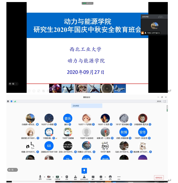 国庆、中秋双节即将来临,为进一步增强学生的安全防范意识,确保国庆节、中秋节期间学生的人身和财产安全,9月27日下午,新葡的京集团35222vip召开了硕博研究生节前线上安全教育会议,博士班各班班长和硕士班大班长、小班班长共计40人参会,会议由研究生辅导员白晓辉老师主持。