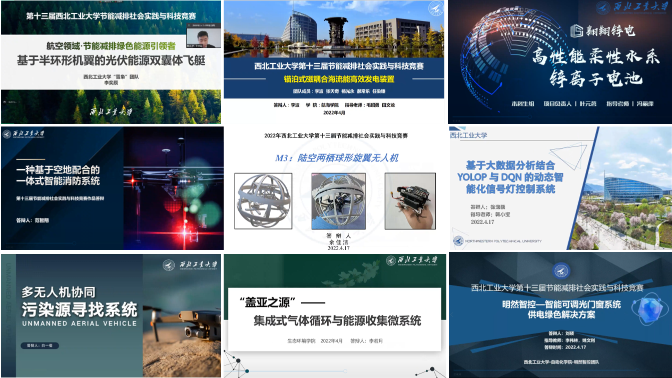 2022年4月17日上午,西北工业大学第十三届节能减排社会实践与科技竞赛决赛采取线上答辩的方式圆满落下帷幕。动力系统节能减排大学生创新实践基地从2021年11月开始筹备本届竞赛,竞赛得到了各学院同学的积极响应,通过初评和网评,最终遴选出47件作品参加本届节能减排社会实践与科技竞赛决赛。