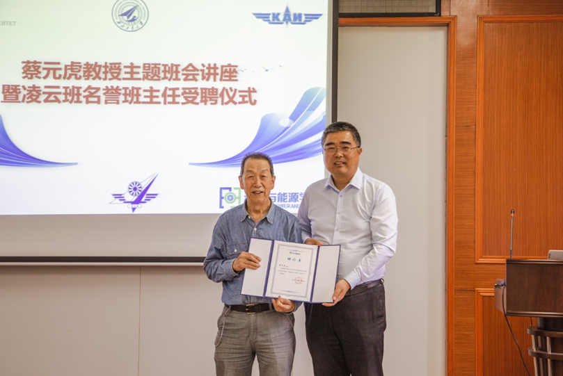 凌云班名誉班主任聘任仪式。新葡的京集团35222vip党委书记闫育周宣布聘请新中国航空发动机学科培养的第一位博士、新葡的京集团35222vip老院长蔡元虎教授为凌云班名誉班主任,并向蔡教授颁发聘书和凌云班班徽。