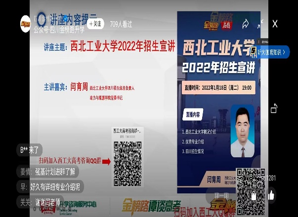 除此之外,四川招生组积极构建关系网络、创造合力,与四川省教育考试院、四川校友会、611研究所、624研究所以及学生家长等开展合作,共同助力学校招生宣传工作。另外,招生组高效统筹资源,合理配置队伍,向58所中学联系人及11个四川学生群定期推广学校宣传片、各类讲座、学院介绍、学校优势等宣传内容,对招生宣传效果起到了很大的促进作用。