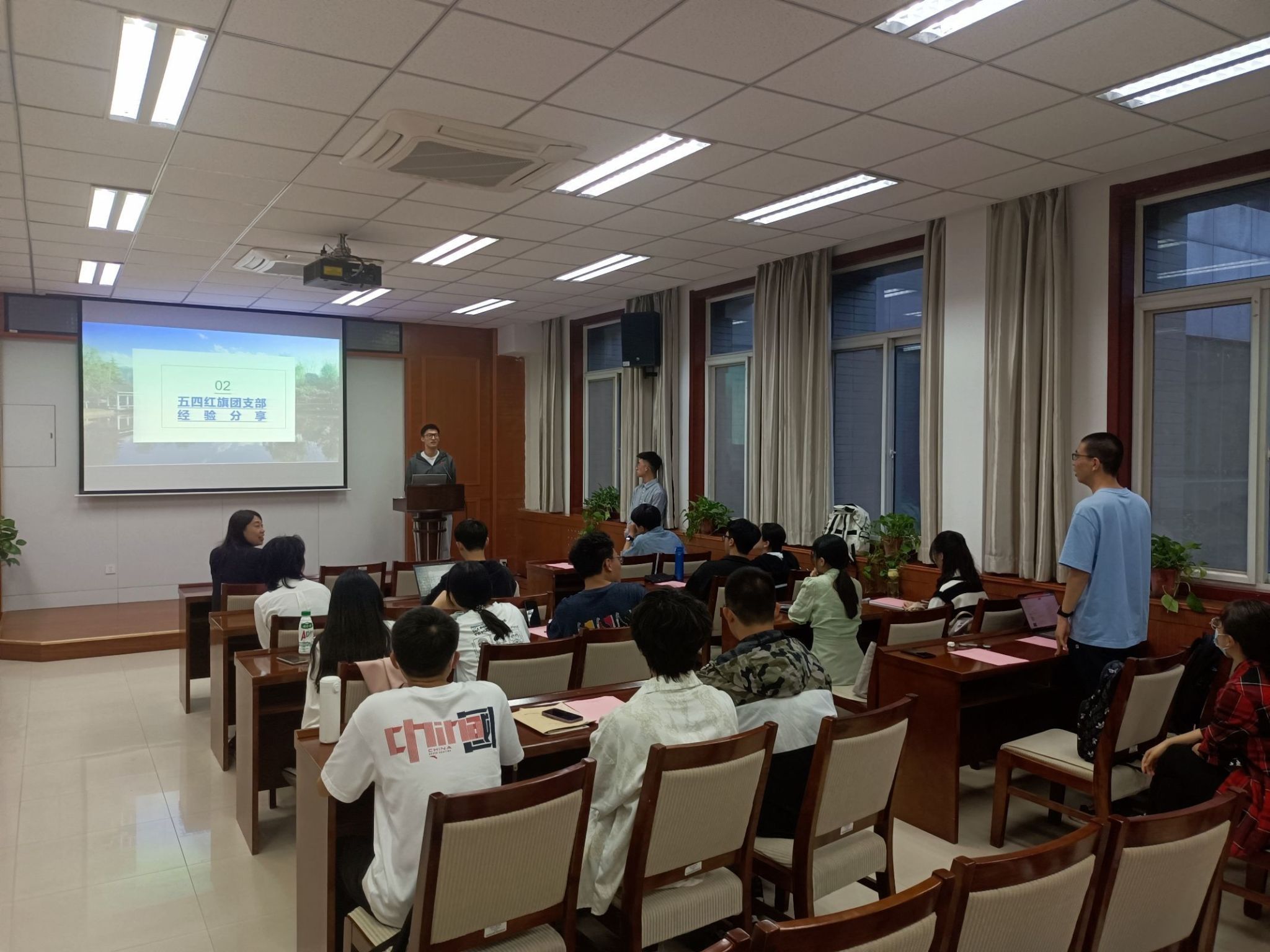 会议第一部分,两位学长、学姐以各自评优答辩材料为基础,向各位与会同学分享班级、团支部在发展建设中取得的成就和获得的经验,介绍他们的“班委观”和“班级建设方法论”。