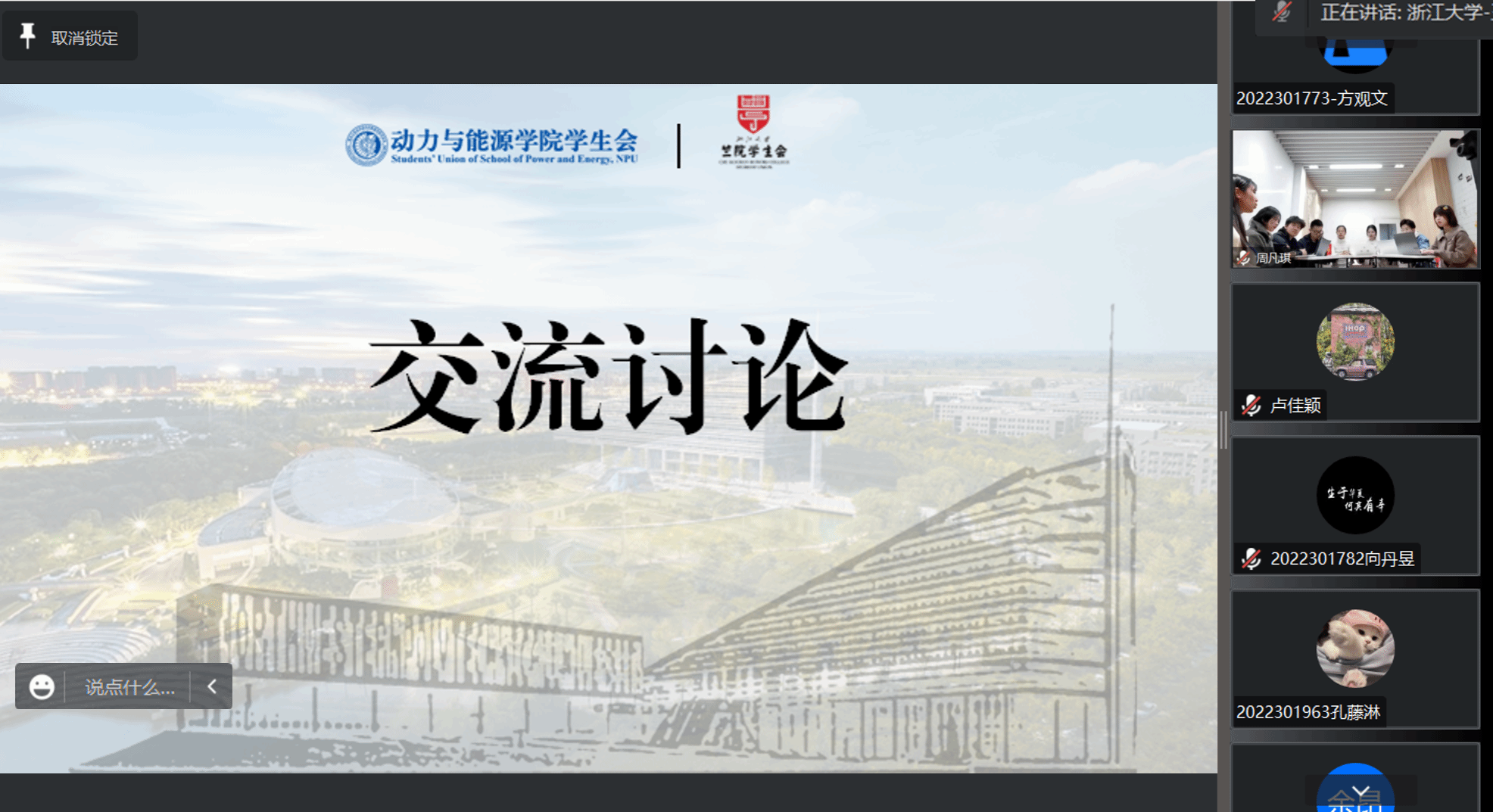 随后,由浙江大学竺可桢学院学生会主席团王云舒同学、新葡的京集团35222vip学生会主席团成员黄悦恒作分享。