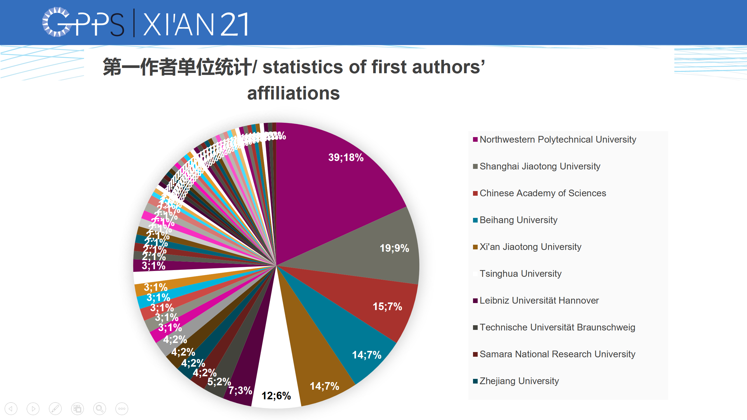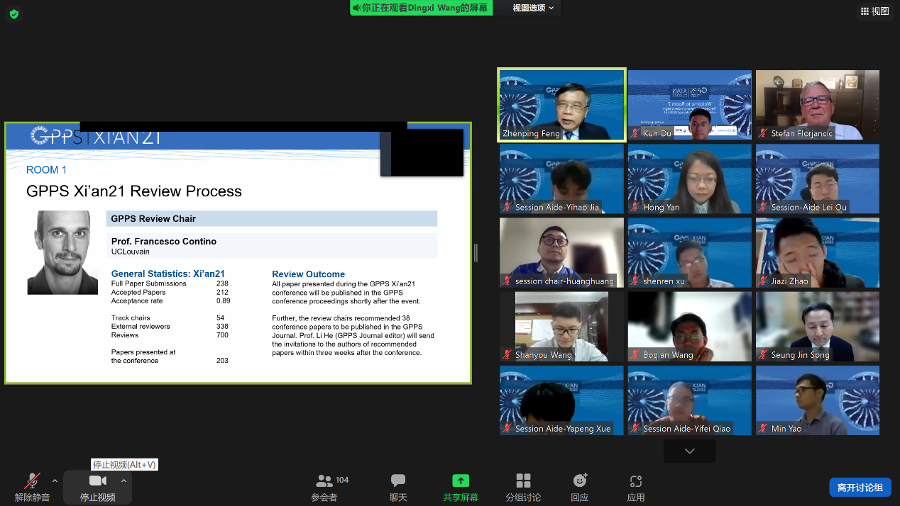 为期三天的国际动力与推进会议于2022年4月13日下午圆满结束,闭幕式由西安交通大学能源与动力学院丰镇平教授主持,表达了对参与者、主席、志愿者、会议工作人员、赞助商的感谢。随后,GPPS颁奖主席Stefan Florjancic博士为2020年GPPS最佳论文颁奖,接着,大会论文评阅主席Francesco Contino博士对本次大会的论文情况进行了总结,其中西北工业大学的论文数占比最高,并有多篇论文被推荐到GPPS Journal上发表。