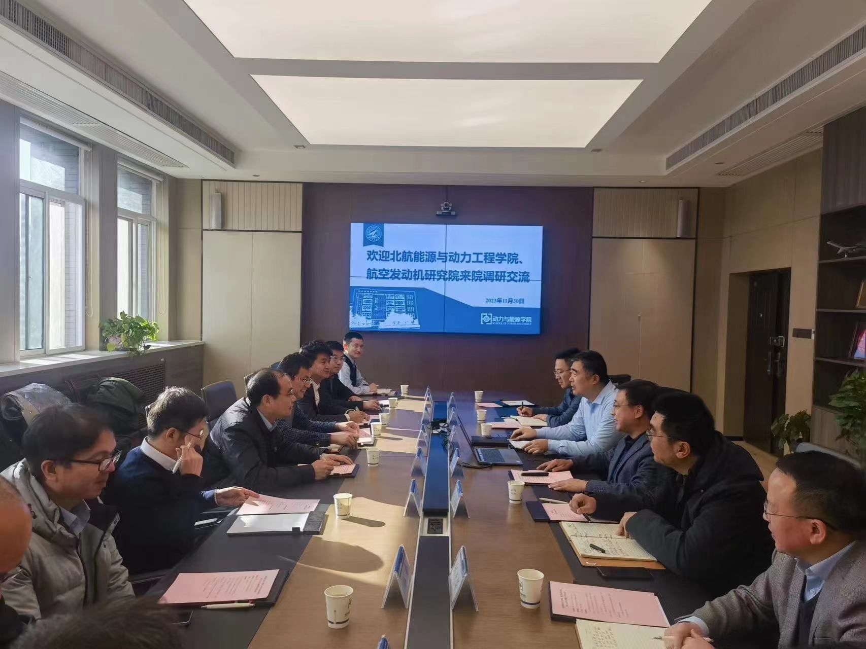 11月30日下午,北航能源与动力工程学院党委书记董卓宁、航空发动机研究院党委书记袁星等一行11人来到我院进行调研交流。学院院长王占学、党委组织部常务副部长、党委书记闫育周、党委副书记刘海涌、院长助理高文君、俄乌中心主任郑光华、办公室主任李斯雯等参加了座谈。会议由闫育周主持。