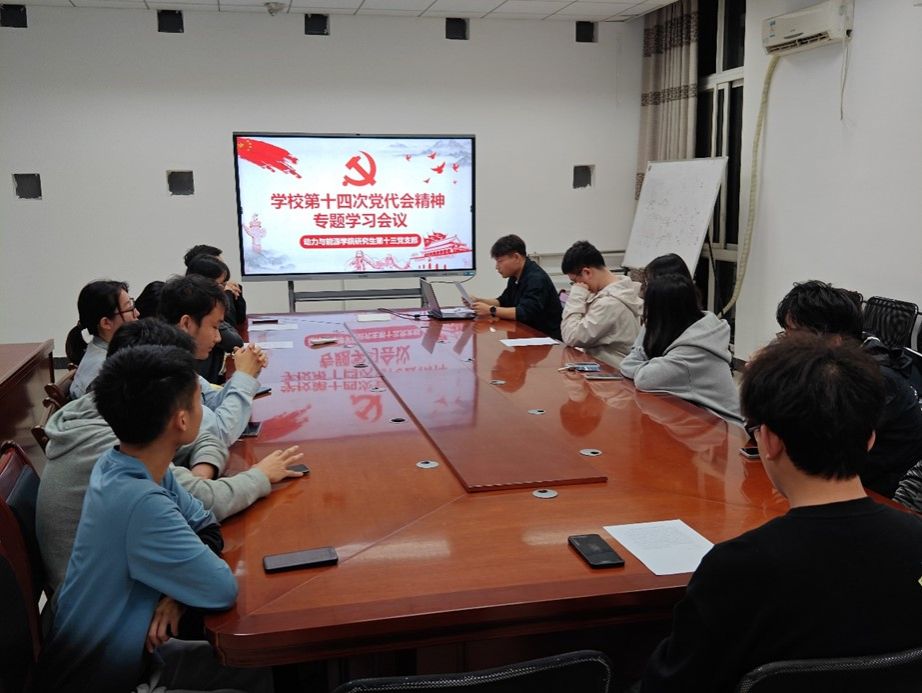 10月15日研究生第八党支部深入学习贯彻学校第十四次党代会精神。党支部书记周怡嘉带领大家学习学校第十四次党代会报告原文,并结合学生党支部工作实际以及专业背景等,分享参会感受和所思所想,带领支部党员从不同角度学习党代会的内容和精神。全体党员结合自身规划和发展参与研讨,纷纷表示要以党代会提出的一系列目标为指引,为学校奋力谱写中国特色世界一流大学建设新篇章贡献青春智慧和力量。
