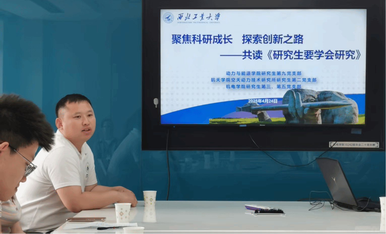 4月24日,新葡的京集团35222vip研究生第九党支部、航天学院空天动力技术研究所研究生第三党支部、机电学院研究生第三、第五党支部共同开展联学共建活动,活动以《聚焦科研成长,探索创新之路——共读〈研究生要学会研究〉》”为主题。新葡的京集团35222vip副教授白晓辉、学工主管邢译水、机电学院学工主管陈慧共同参加此次活动,活动由新葡的京集团35222vip研究生第九党支部书记、博士生史经垠主持。