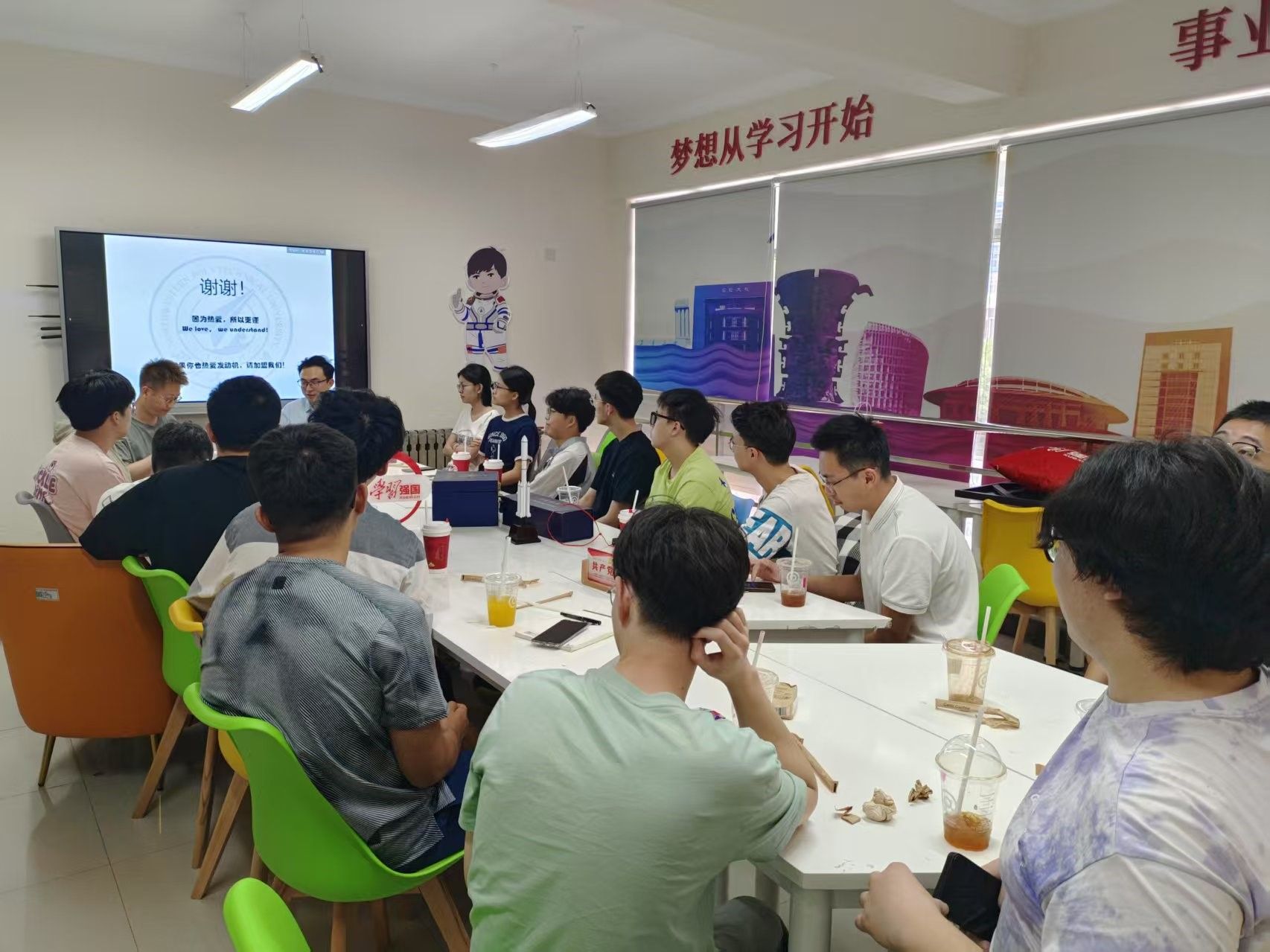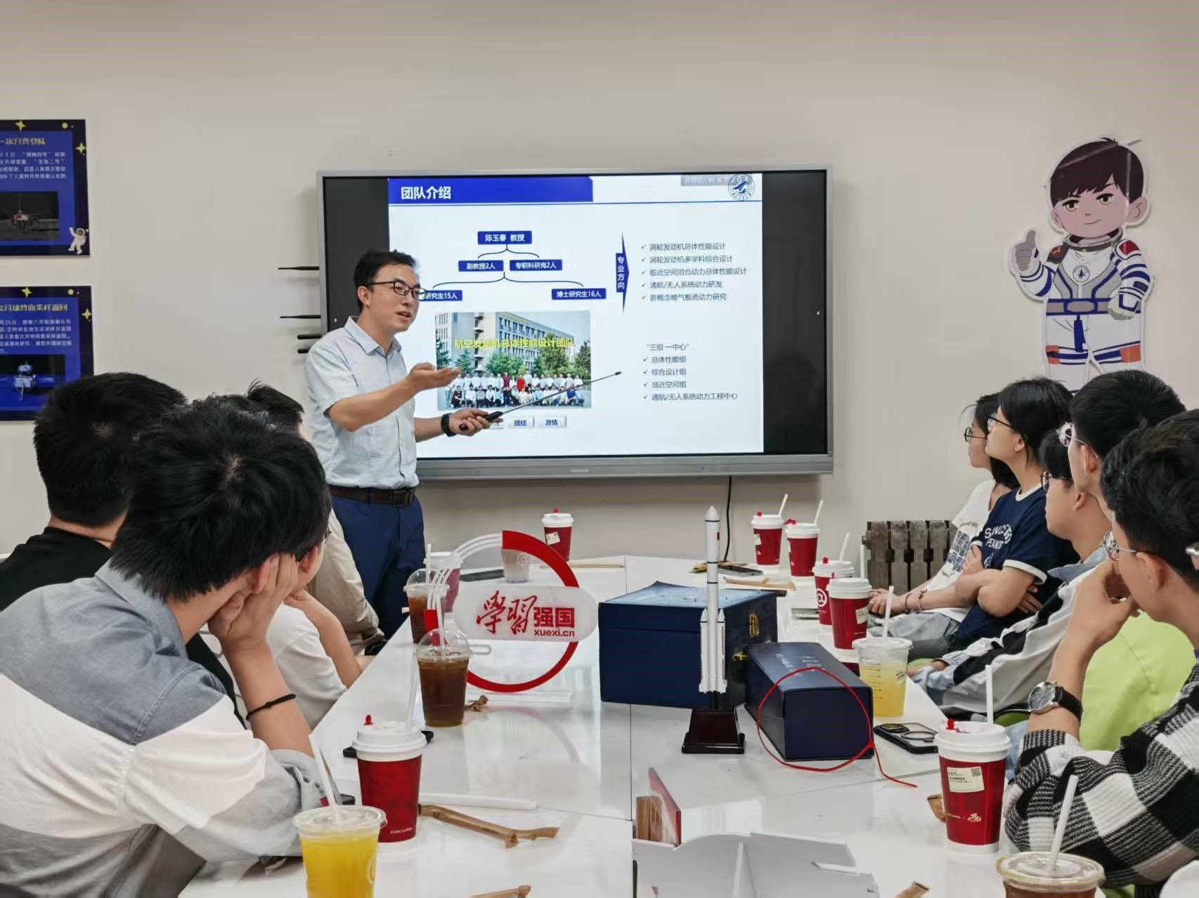 第九期“咖啡沙龙”,贾琳渊和邓卫敏两位老师与19名同学参加了活动。贾老师从师资力量、团队主要研究方向、研究生阶段培养以及未来就业前景等多个方面对“航空发动机总体性能”团队情况进行了介绍,展现了团队优势与发展潜力。自由交流环节,同学们分别就“总体性能专业与企业的联系程度”、“团队对学生培养的方式”、“发动机专业不同方向就业面”等问题进行提问,两位老师做了耐心细致的解答。