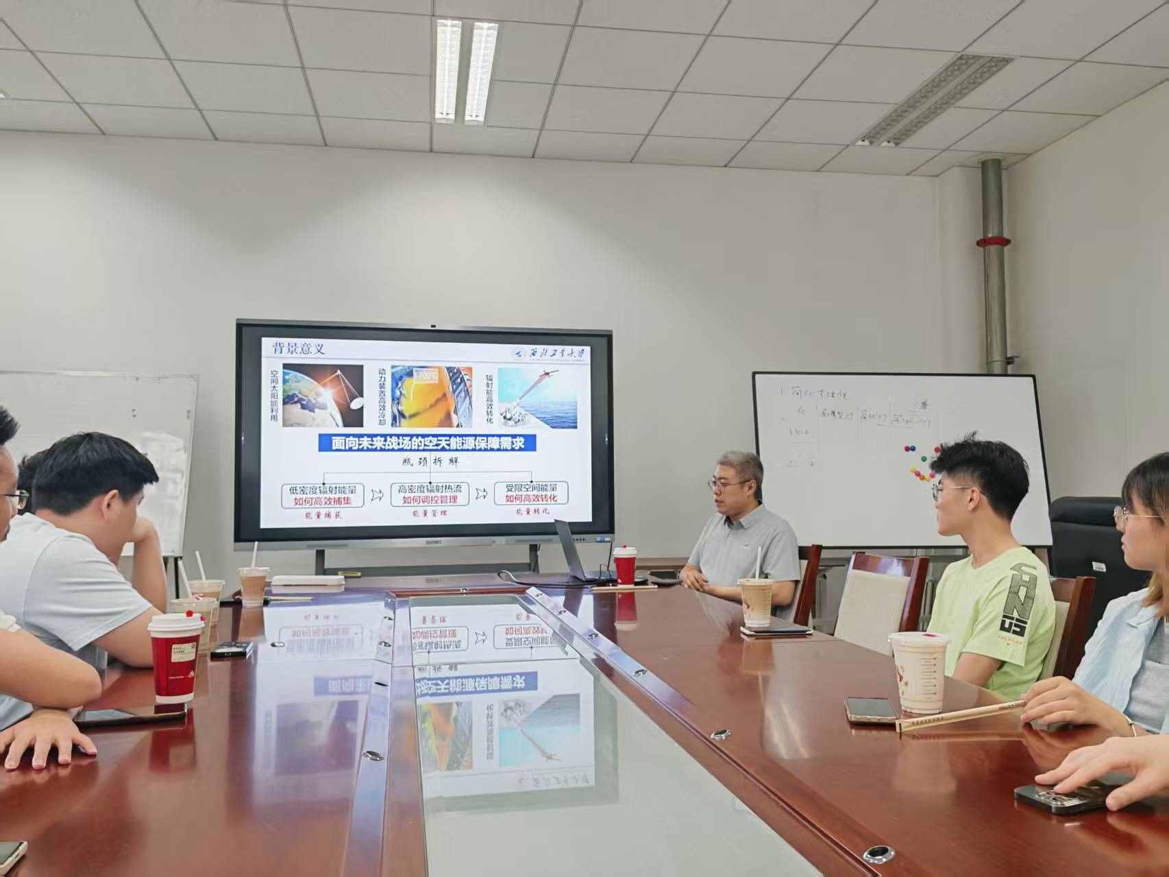 第十三期“咖啡沙龙”,孟宪龙老师和10名学生参加活动。孟老师介绍了空间太阳能利用、动力装置高效冷却、辐射能高效转换等面向未来战场的空天能源保障需求方向的研究。学生就“研究生生期间需要培养哪些方面的能力”“是偏重于解决实际问题,还是写论文”等研究生培养相关问题进行了提问,孟老师做了耐心解答并给出了建议。
