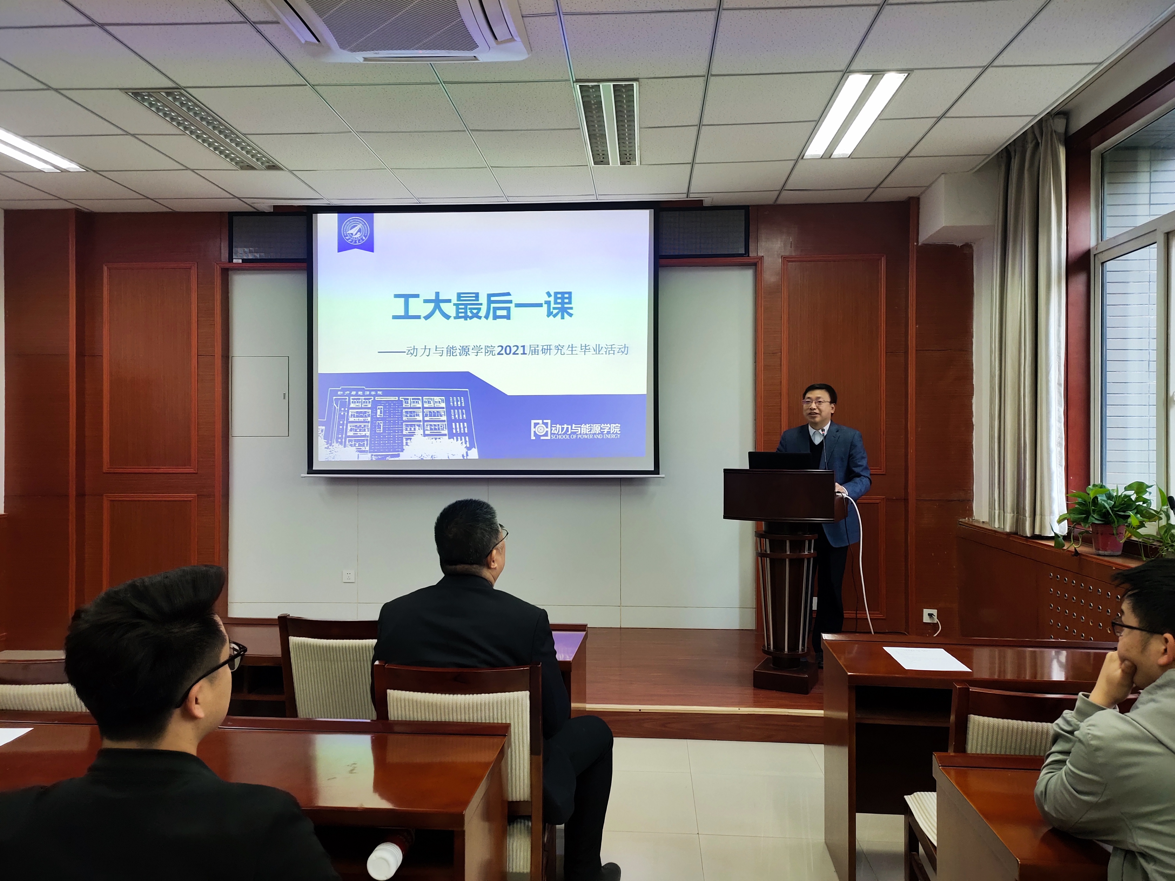2021年3月22日上午10时,新葡的京集团35222vip2021届研究生毕业活动“工大最后一课”在学院225会议室准时开启。新葡的京集团35222vip院长王占学、党委书记闫育周、学生工作办公室主任刘海涌、研究生辅导员白晓辉和学院全体2021届毕业研究生参与了活动。