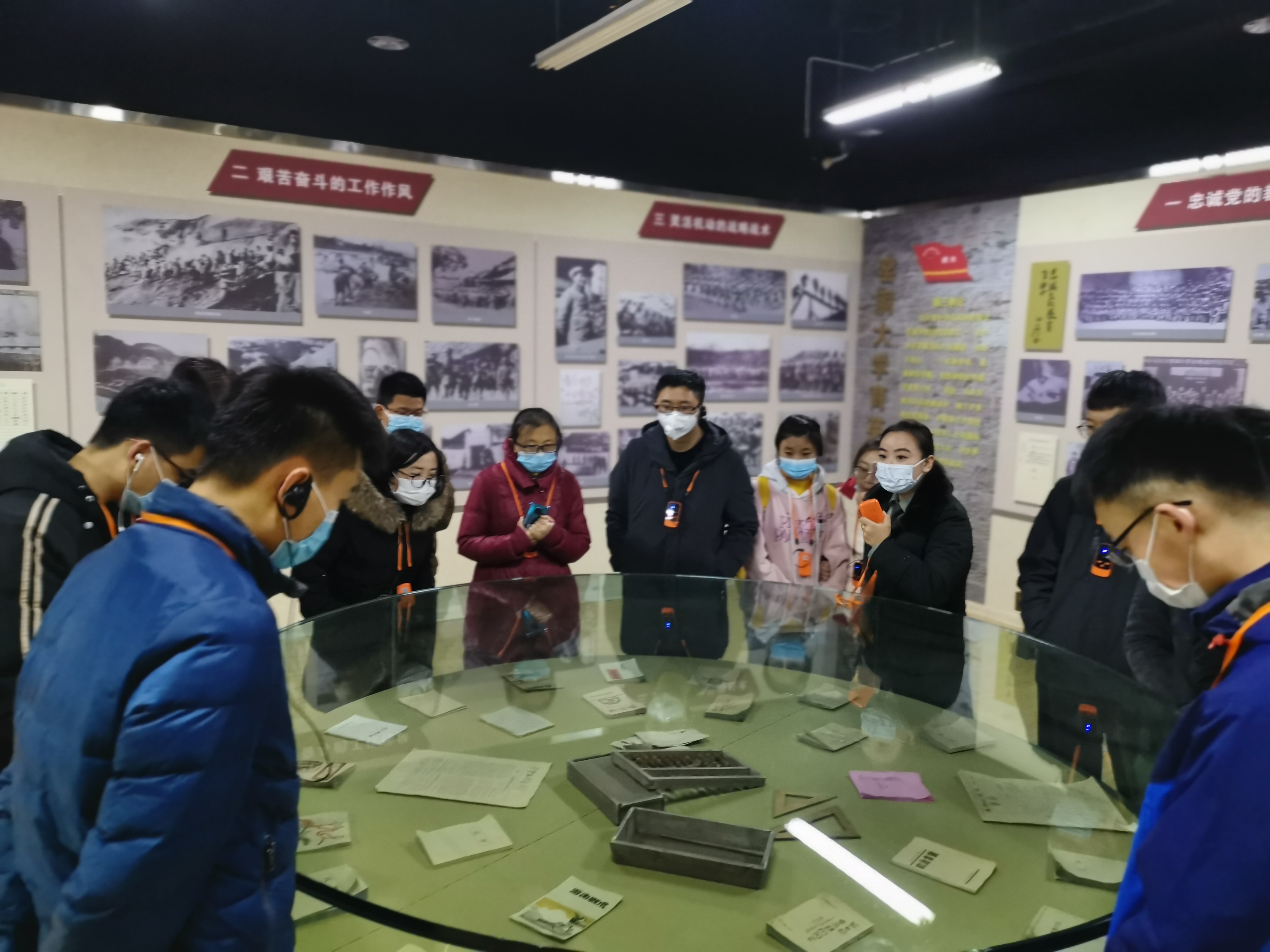 在抗大革命纪念馆,师生们仔细观看了展厅内的照片、实物等,聆听了讲解员对抗大学员们当年在十分艰苦的环境下学习和战斗的事迹的讲解,身临其境体悟延安精神。