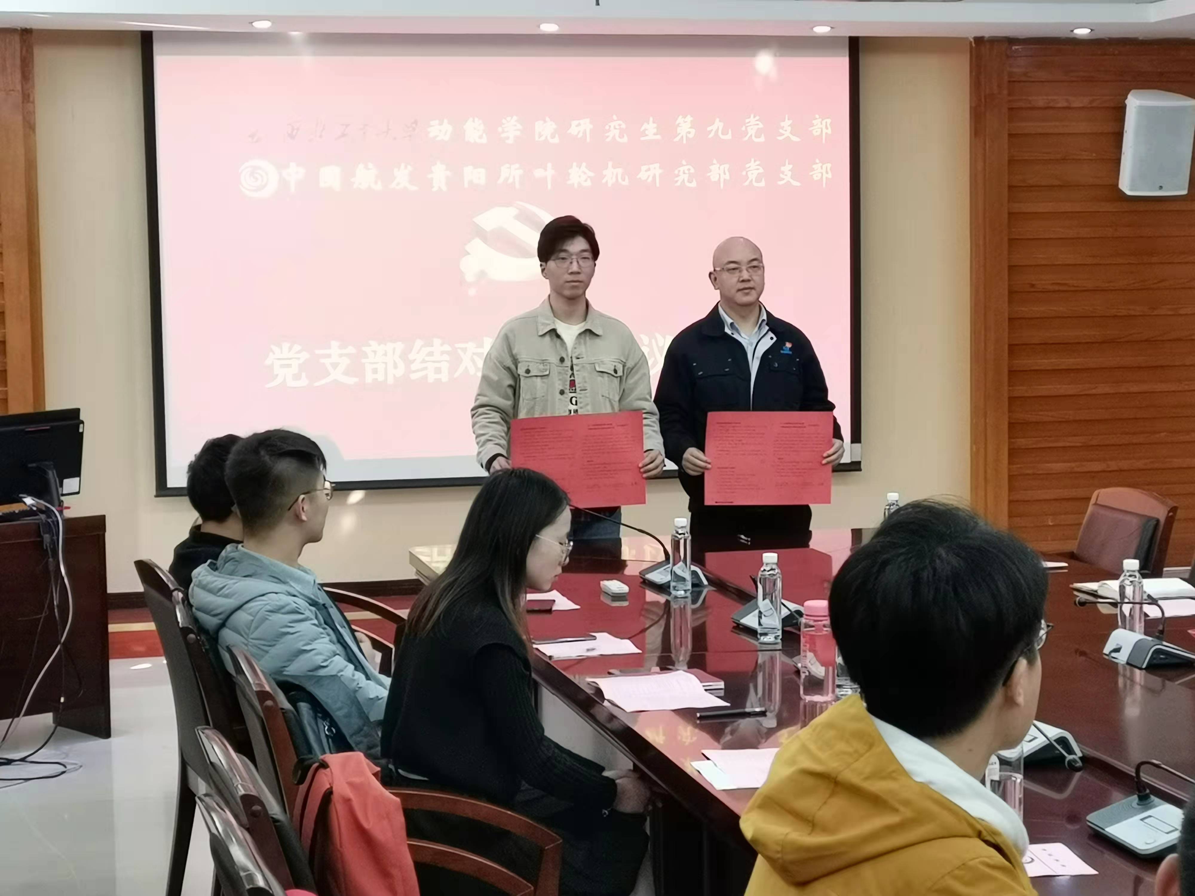 中国航发贵阳所是我国航空动力系统(即航空发动机)领域四大主机设计的航空科研事业单位之一,主要从事中等推力航空涡喷、涡扇发动机的科学研究工作。11月13日上午,中国航发贵阳所叶轮机研究部党支部与新葡的京集团35222vip研究生第九党支部于贵阳所第一会议室进行了支部共建的启动仪式。贵阳所人力资源部部长马岚同志首先对贵阳航空发动机研究所的发展概况和行业现状进行了介绍,让同学们对研究所的历史发展和工作内容有了较为全面的认识。随后,叶轮机研究部党支部书记赵熙同志与新葡的京集团35222vip研究生第九党支部书记朱安冬分别就各自支部建设情况进行了介绍,九支部的建设经验受到了在座领导们的大力肯定。为达成党支部的长久共建关系,双方支部签署了《党支部结对共建协议》,为之后的共建活动开启了一个良好的开端。
