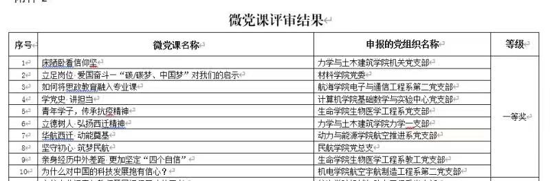 支部对标建设计划要求,积极开展党课建设,支部书记结合学院发展历程录制微党课,以“热爱祖国、顾全大局、艰苦创业、献身航空”的华航西迁精神勉励大家抓住新时代新机遇,到祖国最需要的地方建功立业,在新征程上创造属于我们这代人的历史功绩。微党课视频获得学校评比一等奖。