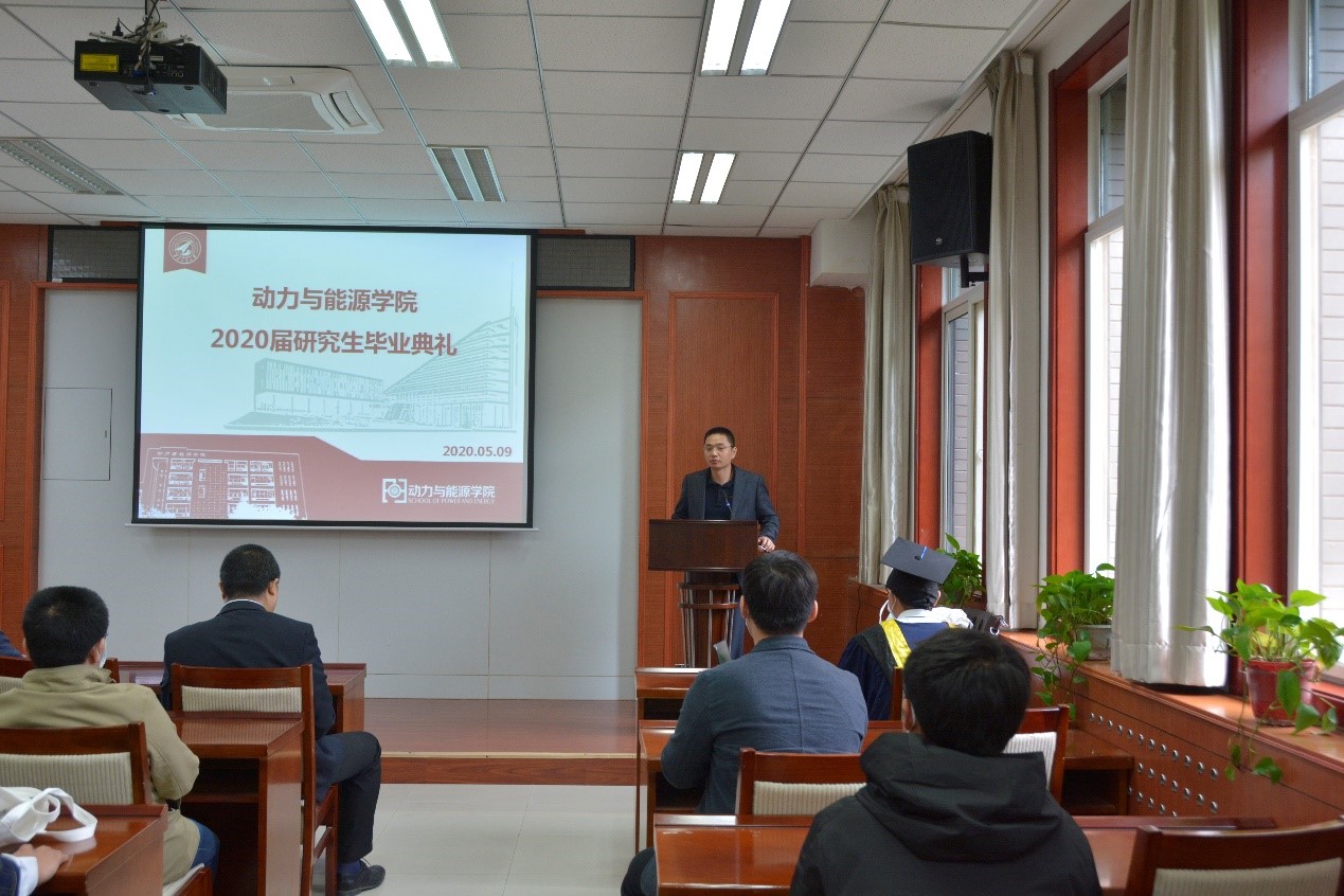 随后,师生共同观看了学院为毕业生准备的毕业季短视频,以此来回顾大家在西工大研究生生活的点点滴滴。欣赏完影片后,优秀毕业生代表赵晨阳代表全体毕业研究生发言,他说:“感谢学院对我们的培养,感谢各位老师对我们的教诲和关怀,感谢在西工大读书的这段美好的生活。从今天起,我们将踏上未来的征程,我们会一如既往的奋力前行,定不负使命!”。