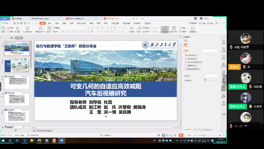 西北工业大学“三航杯”大学生课外学术科技作品竞赛是我校传统的学生科技活动,该项赛事引导和激励广大学生学习科学知识、科学方法,培育实事求是、脚踏实地的科学精神,培养创新能力和实践能力,全面提高科学素养。为了让更多同学了解“三航杯”竞赛,营造良好的科技竞赛氛围,2020年4月19日,新葡的京集团35222vip面向全院同学开展“三航杯”竞赛经验分享会,本次分享会吸引了近百位同学前来聆听。