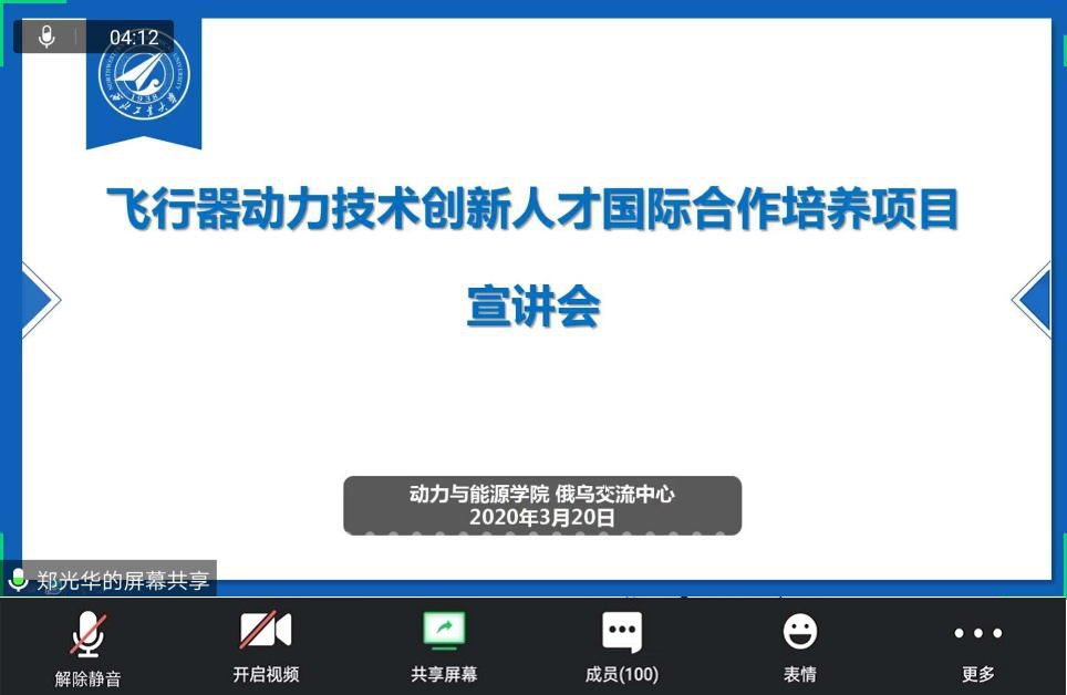 2020年3月20日19:30,新葡的京集团35222vip借助腾讯会议平台对“飞行器动力技术创新型人才国际合作培养项目”的相关内容进行宣讲。新葡的京集团35222vip有留学意向的100多位师生通过直播观看了本次宣讲。