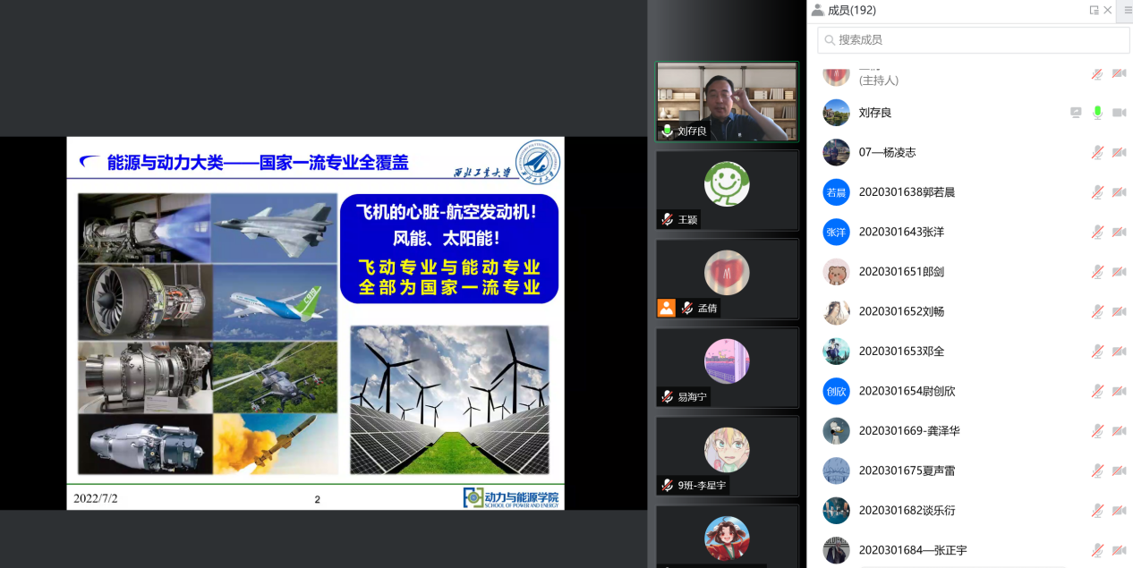 首先,刘存良介绍了飞行器动力工程专业和能源与动力工程专业的定位与现状、就业与升学前景。接着,针对2020级培养计划和课程体系中的大类平台课、学科基础课、专业核心课及实践实训课等模块课程的调整进行了详细的介绍。