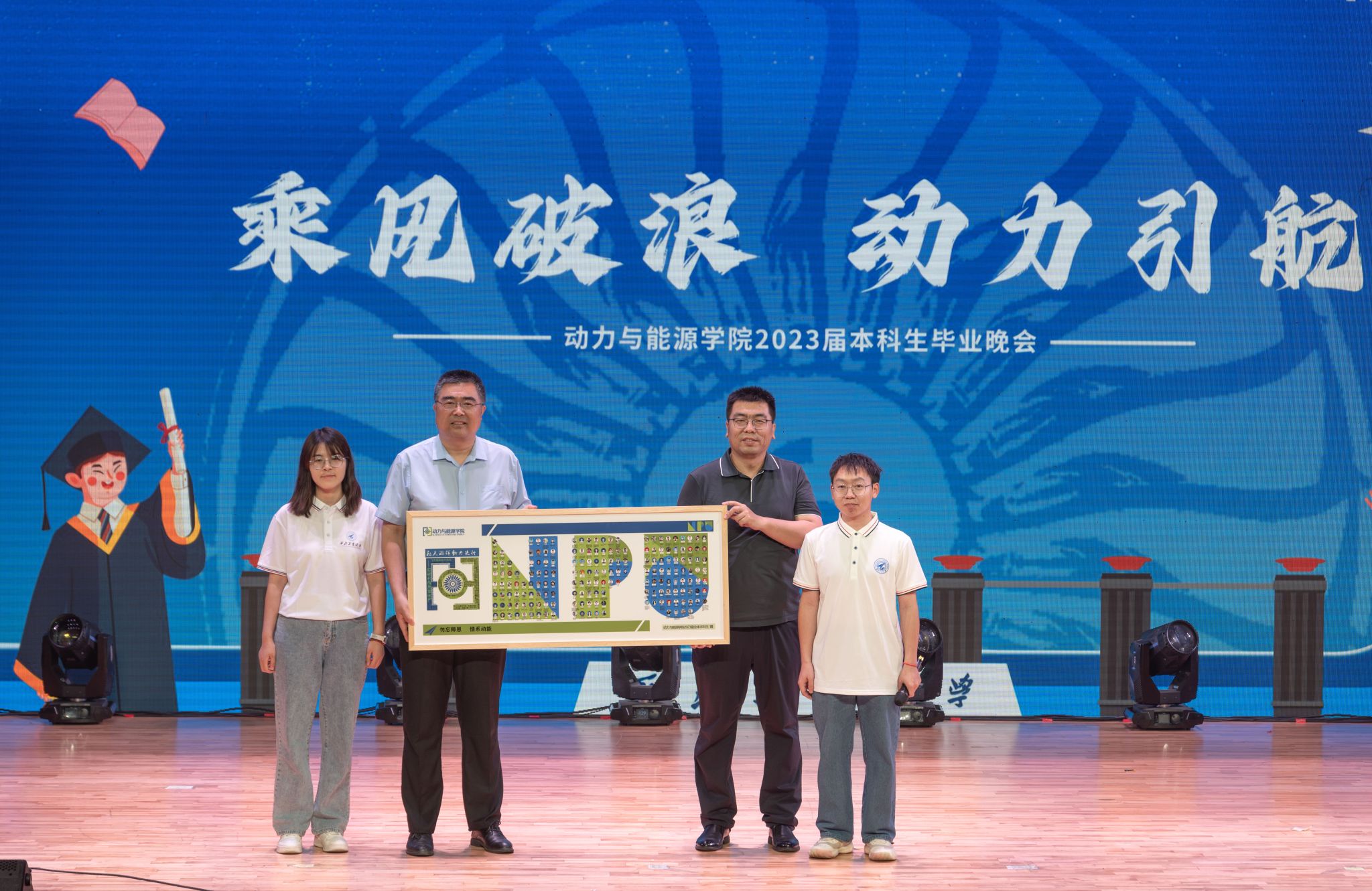 由2023届毕业生共同参与制作完成的礼物交付学院,上面印有学院院徽与NPU字母,映衬着每一位同学的照片与寄语,这代表着同学们对母校的一片赤诚感恩,更是同学们在学院留下的成长足迹。