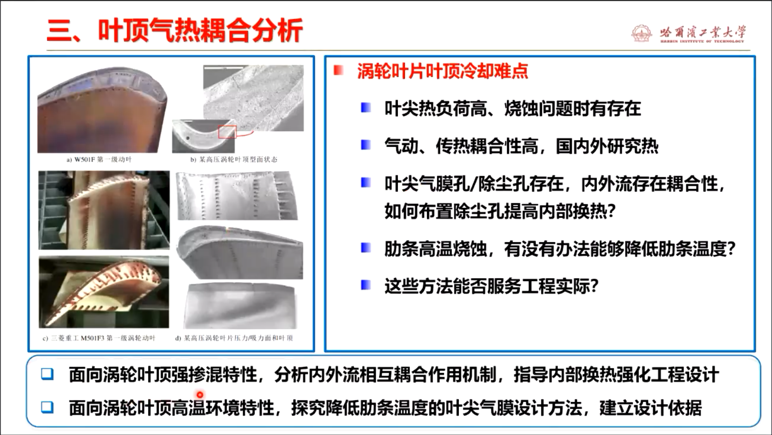 罗磊教授首先介绍了自己的科研历程。介绍了所在团队在发展高效换热强化方法,气热耦合设计依据,建立设计技术三个方面的学术情况。接着介绍了涡轮叶顶冷却存在的技术难点,结合实验与数值模拟研究给出了面向涡轮叶顶强掺混条件下内外流相互耦合作用机制,进而确定了内部换热强化工程设计和及面向涡轮叶顶气膜冷却改进设计方向,并对团队在这两方面的研究成果进行了讲解。最后介绍了涡轮叶片冷却设计方法,说明了方案阶段优化设计的必要性,对国内外已有的设计系统进行了介绍,并从典型航空发动机部件建模技术、高精度自动化分网技术、低维度/快速气动与传热等三个方面对团队的研究成果进行了详解。