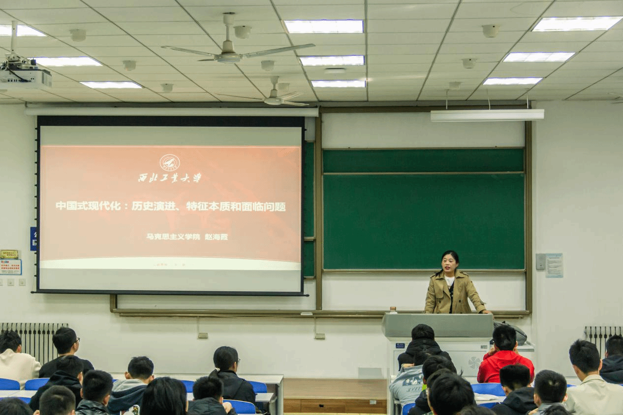 赵海霞副教授从中国式现代化的历史演进,特征本质和面临问题三个方面进行授课。首先,她从党的二十大报告出发,强调中国式现代化是“党领导全国各族人民在长期探索和实践中历经千辛万苦付出巨大代价取得的重大成果”,成为了一种崭新的文明建构方式,并且要“以中国式现代化全面推进中华民族伟大复兴”。随后,赵海霞副教授从新中国成立前到当今社会,带领大家全面学习了中国式现代化的开局与奠基,突破与飞跃,推进和拓展三个阶段的历史演进,并以苏联为典型案例,生动详细的讲述了新中国成立后“四个现代化”历史任务的由来。