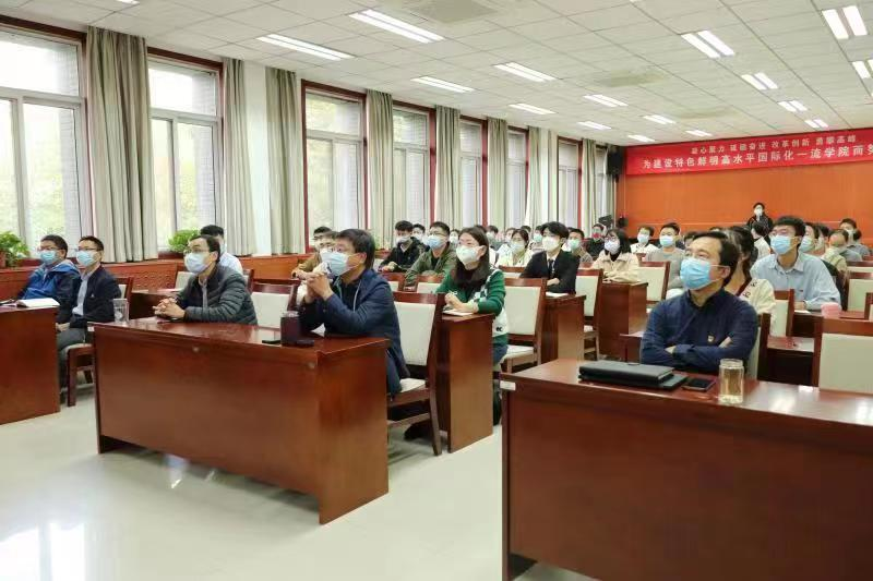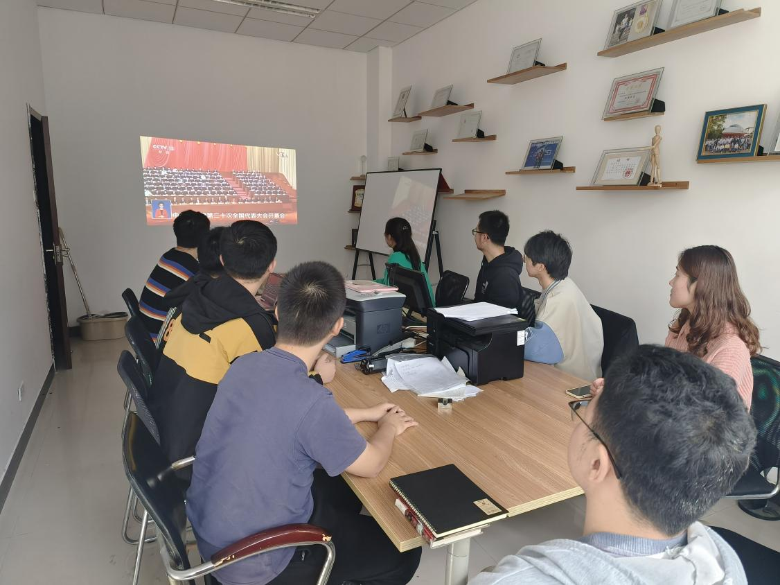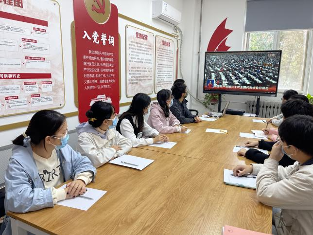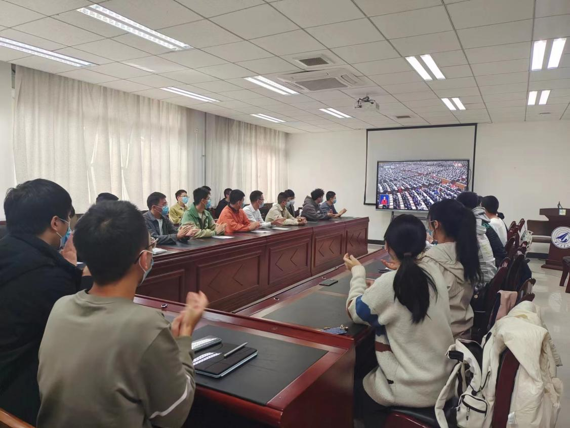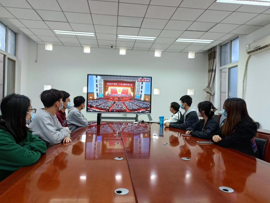 新葡的京集团35222vip院领导、各党支部代表、团学组织代表和新生代表在学院楼225会议室集中收看中国共产党第二十次全国代表大会开幕会实况。