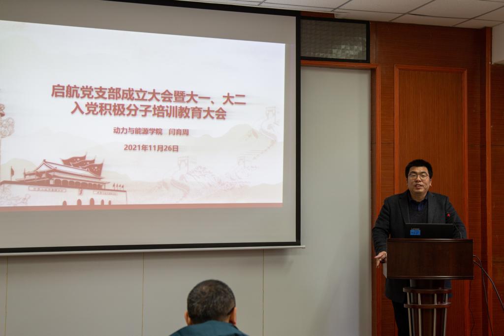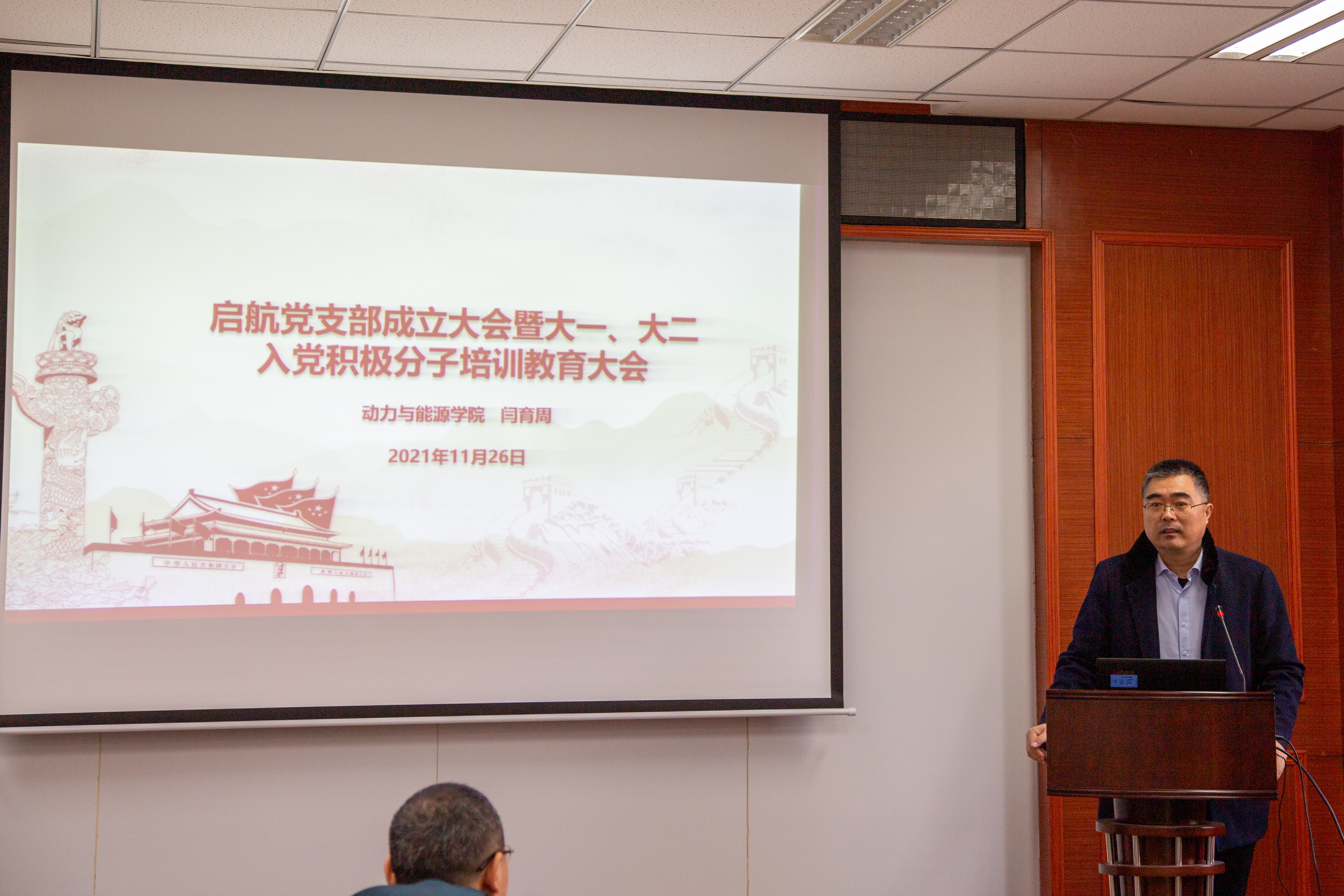 2021年11月26日下午,新葡的京集团35222vip“启航党支部成立大会暨大一、大二入党积极分子培训教育大会”于动能学院楼225会议室召开,本次大会由学院党委副书记刘海涌主持,参会人员有党委书记闫育周、启航党支部的老师以及本院20级、21级入党积极分子。