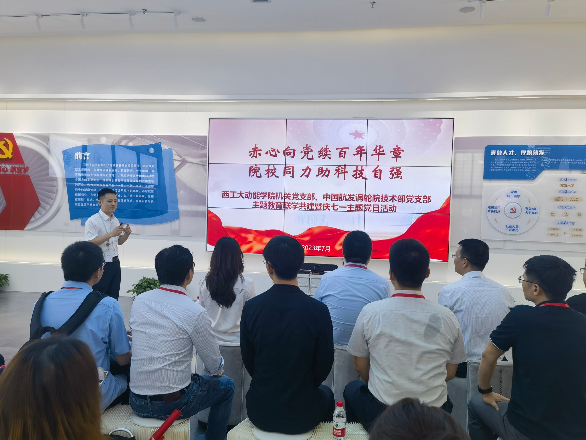 活动伊始,涡轮院罗林书记带领与会人员参观了涡轮院科技创新中心,详细介绍了中国航发涡轮院的历史沿革、型号研制历程、科技创新、院校科研协作、党建工作等情况。与会人员对航空报国的情怀深受感染。